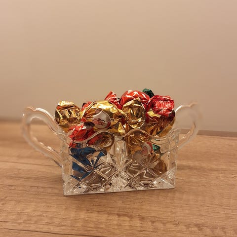 Sievä matala tarjoilulautanen. Kristallia. Pituus 18 cm korkeus 3 cm.