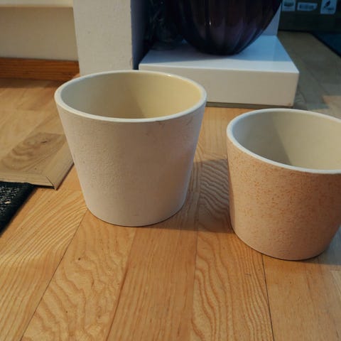 Valkoinen ruukku korkeus 10 cm, halkaisija 12 cm.