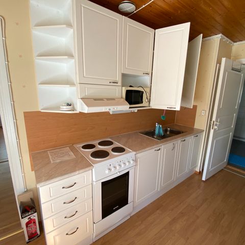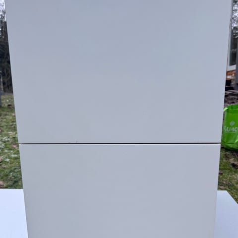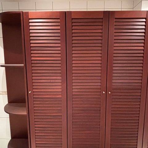 Yksi kaappi täysin jaloilla, yksi ilman jalkoja, yhdessä yksi jalka rikki.
