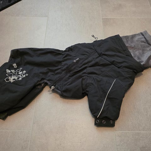 Pennulle pieneksi jääneet, vähän käytetyt, harmaat koiran haalarit koossa 45 / medium. Hyvässä kunnossa, en löydä mitään moitittavaa. Lämpimät ja helppo pukea, ostettiin itselle samat isommassa koossa kun nämä jäi pieneksi :)