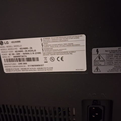 Mukaan virtajohto ja kaukosäädin. Tarvitsee kaksi kantajaa (yllättävän painava) ja riittävän ison auton noutoa varten.