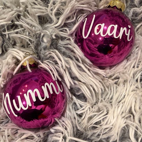 -3 tai 4cm halk 3€/pallo, värit punainen, ruskea, vihreä, hopea, sininen