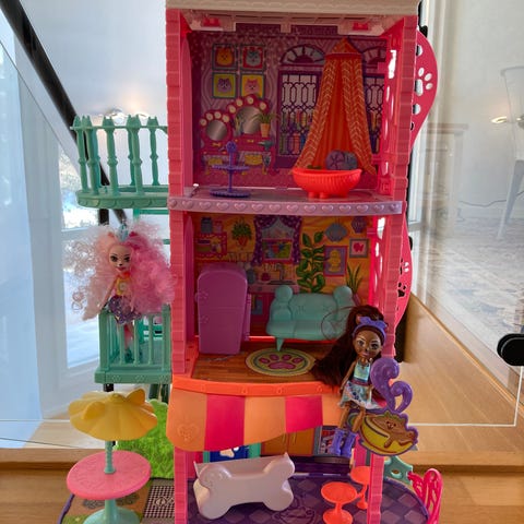 Kuvanmukainen Enchantimals talo, huonekaluja, sekalainen setti nukkeja ja eläimiä. Kaikki tavarat eivät välttämättä ole alkuperäisiä. Ei myydä erikseen. Nouto Simonkylästä tai Toridiili.