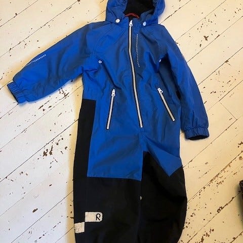 104 koko reimatec haalari. Käytön jälkiä polvissa mutta ehjä.