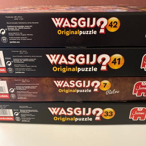 Jumbo Wasgij Destiny Puzzle Retro -palapelisetti, joka sisältää neljä erilaista 1000 palan palapeliä. Palapelien teemat ovat retro-tyylisiä, ja ne tarjoavat haastetta ja viihdettä palapelin ystäville.