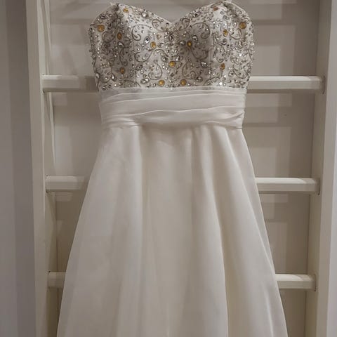Naisten valkoinen lyhyt hääpuku XS