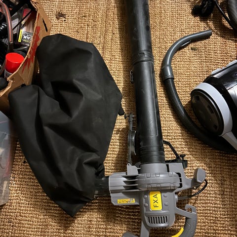 Hyvin vähällä käytöllä ollut yhdistetty lehti-imuri ja -puhallin, teho 2600 W. Kierrosnopeuden säätö, 40 litran keräyspussi
