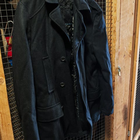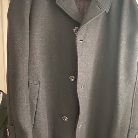 Tyylikäs ja käyttämätön. Koko on noin 54-56 (kuvan herra kokoa 52 ja siksi käyttämätön). Mustat vaihtonapit.