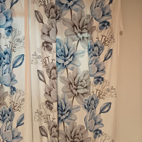 Vallilan vähän käytetty, täysin uudenveroinen verho. Siisti ja ehjä verho. Ensimmäisessä kuvassa näkyy kuvaajan varjo, ei ole tahraa. Koko 250cm*147cm. Kuosi Saga design Ervin Latimer.
