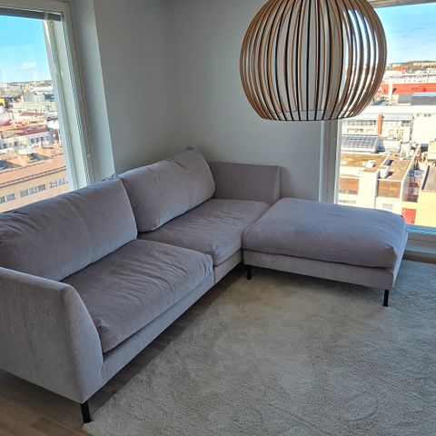 Myydään muuton tieltä n. 9kk sitten uutena hankittu sohva, eli ei vielä edes kunnolla sisäänajettu. Malliltaan oikeakätinen Maskun ”Ruana” kolmenistuttava divaanisohva. Todella mukava istua/löhöillä. Napakka mutta pehmeä ja joustava, jos pitäisi sanoin kuvailla. Saa keskeltä kahtia kahteen osaan kantamista varten.