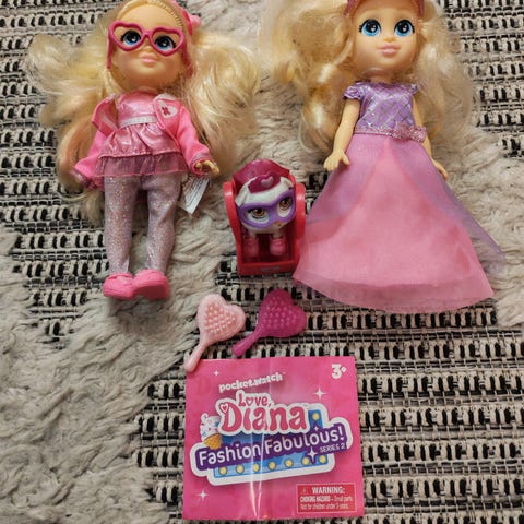 Love Diana Princess nukke ja Roma nukke + tarvikkeet. Dianan voi stailata prinsessasta supersankariksi ja Roman DJ:stä palomieheksi. Nuken pituus 33cm. Myydään yhdessä 20€ tai erikseen 10€/nukke tarvikkeineen.