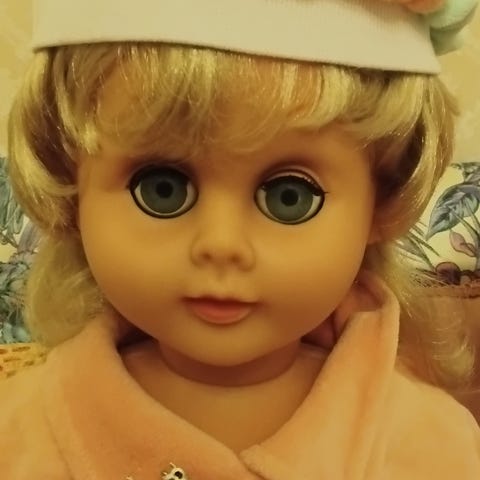 Ei leikitty -ollut koristeena kirjahyllyssä.
