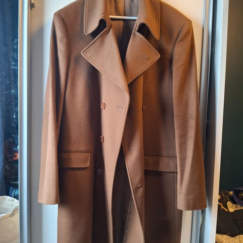 Käytännössä käyttämätön miesten puolipitkä (pituus polven yläpuolelle) ja keskisininen (kuvaa vaaleampi) Sand Sultan villakangastakki, 15 % kashmiria ja 85 % villaa. Näkyy uudet olevan Stokkalla yli 550 e. Moderni, muutaman vuoden takaa. Kokovuori, kaksi povitaskua, takahalkio ja kauluksen alla nahkavahvike. Koko 54, mutta slimmi malli, joten vastaa pikemminkin kokoa 52, jota yleensä käytän. Jäi kaappiin turhan pantiksi, kun ei on minulle vatsan seudulta (valitettavasti) turhan tiukka. Olen 180 cm ja 92 kg, joten takki käy minua hoikemmalle ja myös reilusti pitemmällekin kaverille.