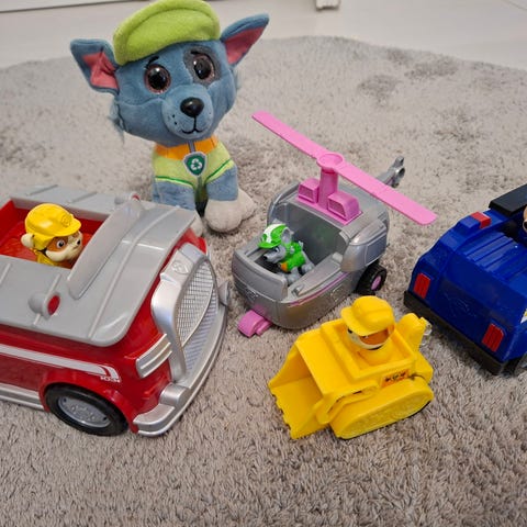 Iso kokoelma Ryhmä Hau -ajoneuvoja ja hahmoja. Kaikki hyvässä leikityssä kunnossa, oikein passeleita seuraavalle leikkijälle.