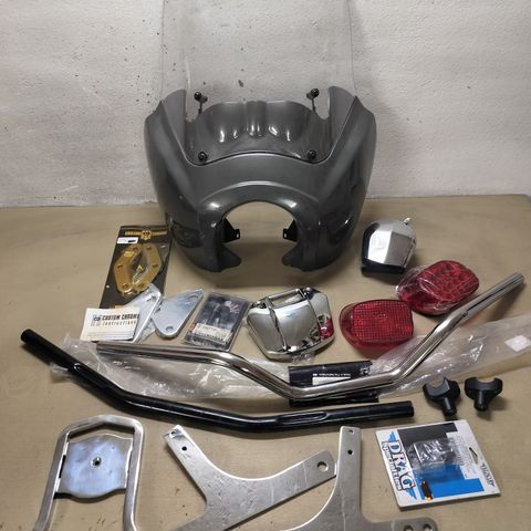 Fat bob valokehys. Rubbercombilla mustattu, voi poistaa ja alla naarmuton kromi. Pikku vekki yhessä kohtaa. Hp. 10e