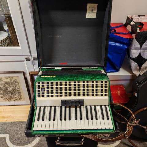 Myydään hyväkuntoinen pianoharmonikka ja kova laukku.