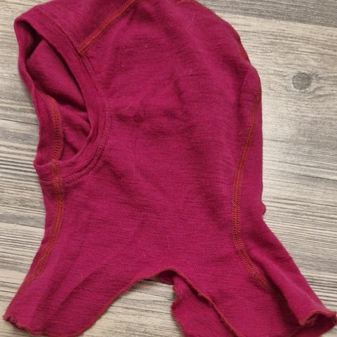 Lämmin merinovillainen kypärälakki puuvillavuorella, kokomerkintä s. Sopii mielestäni noin 2-4 vuotiaalle.