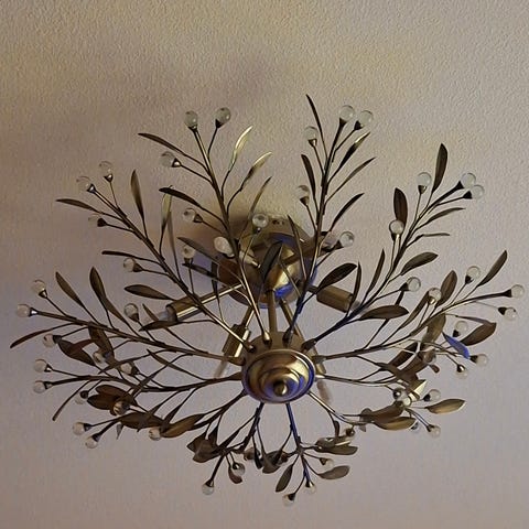 Kaunis pussikruunu, kristallia ja 4 kynttilää