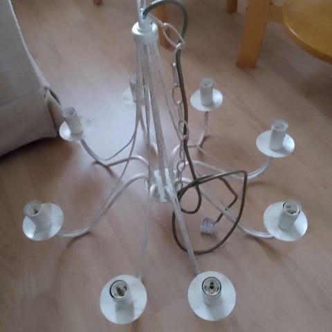 Valkoinen seinä/kattovalaisin. Lamppuun sopivat kuvassa esim. 9W polttimot. 2kpl/lamppu, lamput ei kuulu hintaan.