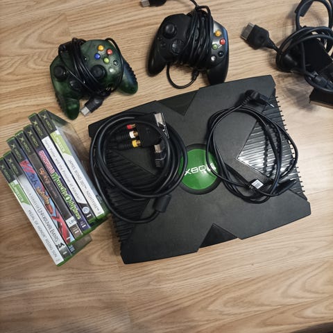 Alkuperäinen Xbox (Original) -paketti + 3 ohjainta + 6 peliä