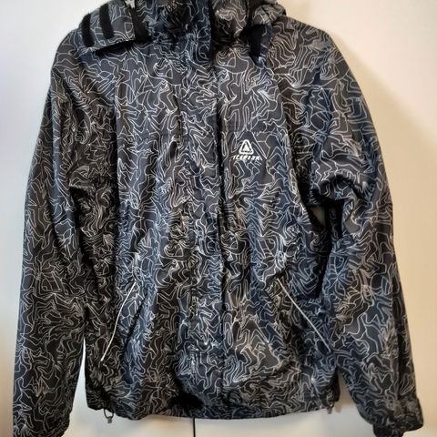 Hyvässä kunnossa oleva kuoritakki. Kapeahko leikkaus. Todella vahvaa kangasta. Vedenpitävä ja teipatut saumat. Verkkovuori. Irroitettava huppu. Koko 38 on aika optimistinen, sanoisin olevan lähempänä 36.