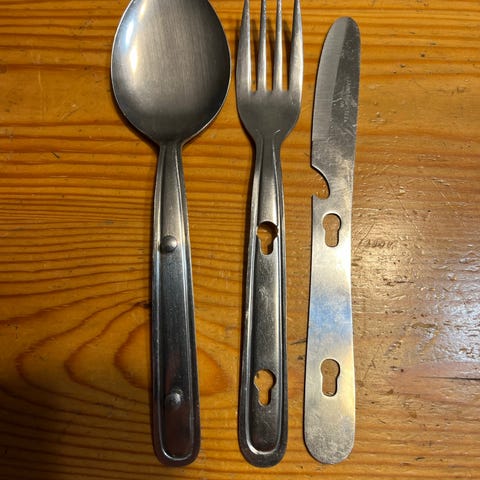 Itselle tuntematon merkki, veitsen kärki vääntynyt