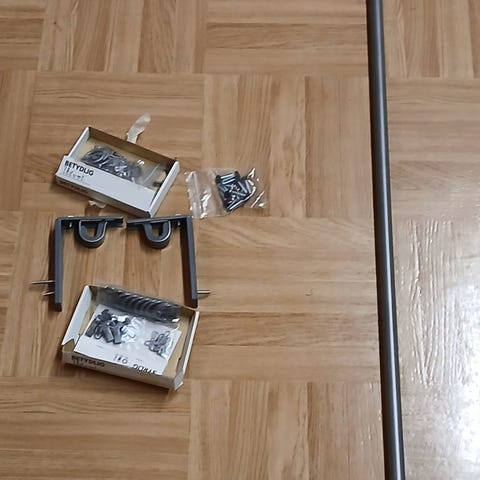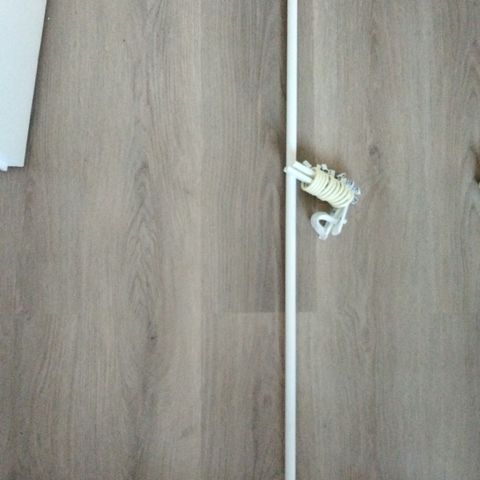 Metallinen musta verhotanko, max 190 cm pitkä, koostuu kolmesta putkesta.