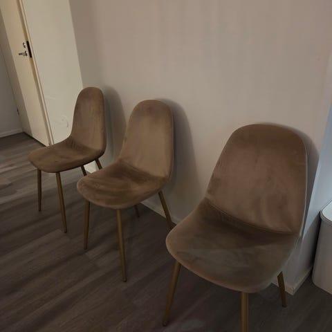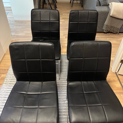 Ok kuntoiset Jyskin tuolit tummanharmaa/sinertävä väri.