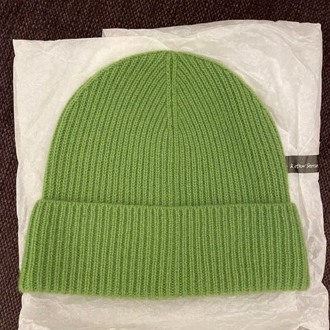 Ajoittain käytössä ollut kashmir pipo. Pipon sisäpuolella otsan alueella näkyy pieni tummentuma, katso viimeisen kuvan ympyröity alue. Tummentuma kuitenkin niin haalea, että sitä oikein saa näkyviin kuviin.