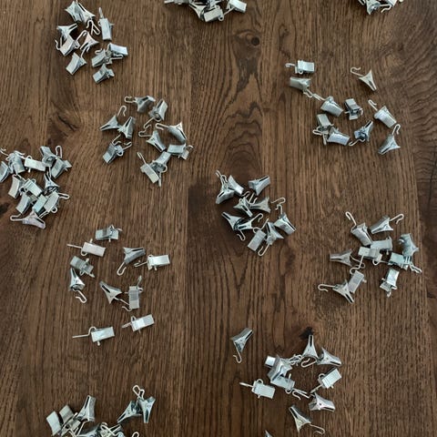 Valkoiset verhon pidikkeet 2 kappaletta eli pari. Yhteensä 9 €.