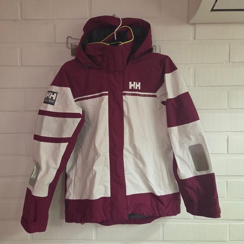 Helly Hansen Hellytech Perfotmance vedenpitävä ja hengittävä takki. Väri on valkoinen, harmaa ja neonkeltainen huppu. Erittäin siistisdä kunnossa. Vetoketjut ja tarrat toimivat. Koko on S. Mitat:kainalo-kainalo 51cm,kainalo-hihansuu 50cm, olka-helma 62cm. On käytetty vain purjeveneellä yhdrn kauden.