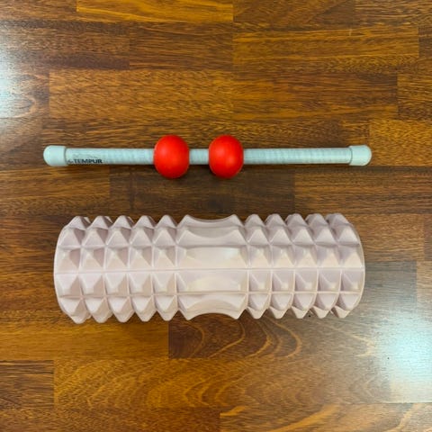 Vaaleanpunainen hierontaväline, jossa on pyöreitä hierontapisteitä. Sopii lihasten rentouttamiseen ja verenkierron parantamiseen.