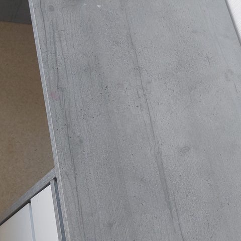 Pöydässä on muutama juomalasista jäänyt renkula, jotka näkyvät vain jos valo osuu niihin tietyssä kulmassa. Lisäksi pöydän sivussa aivan pieni kolhu, jota ei huomaa käytössä ja ei vaikuta käytettävyyteen.😊
