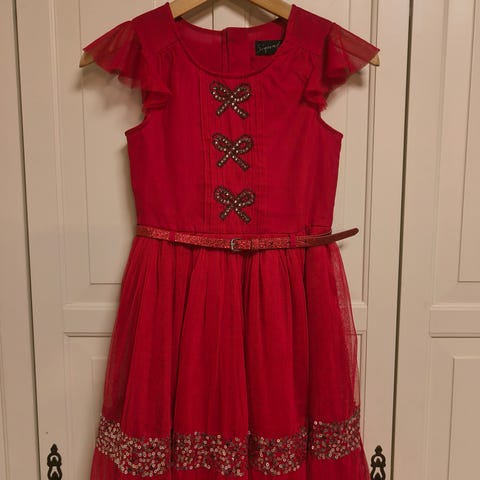 Kokomerkintä 15 y / 166 cm. Hihat samettia. Väri joulunpunainen. Kainalo-kainalo 44 cm, olka-helma 86 cm. Ei lemmikkejä tai tupakointia.