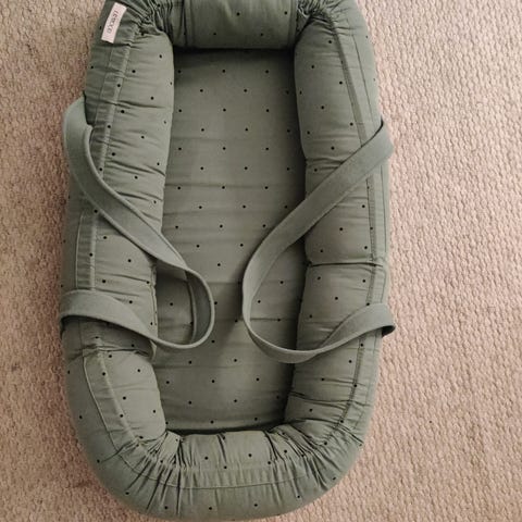 Yhdellä lapsella käytössä ollut unipesä. Hyvä ja siisti kunto. Ehjä. Ei isoja tahroja mutta aran värin vuoksi voi hieman olla kellertymää kankaassa.