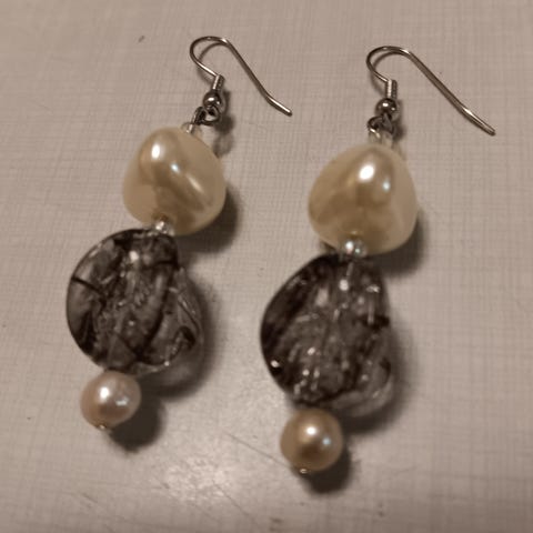Läpinäkyvät korukivet koruosan alaosassa, korvakoukuista roikkuva koruosa 16mm korkea. Postitus ToriDiilin mukan. Hopeamerkkejä en löydä.