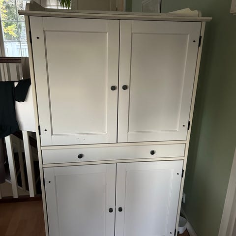 Ikea korkeakiiltoinen valkoinen kaappi jaloilla. Kaappeja on kaksi ja ne saa yhdistettyä kuten kuvassa näkyy.