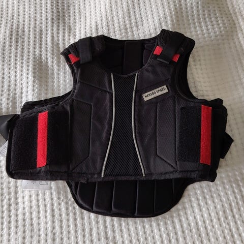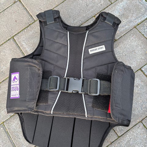 Ratsastajalle turvaliivi. Pientä käytönjälkeä on, muta ei mitään isompaa. Mielestäni siisti ja hyväkuntoinen liivi vielä seuraavalle.