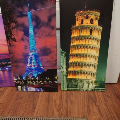 Kaksi hyväkuntoista taulua, joissa ledvalot sisällä. Koko 50 x70 cm