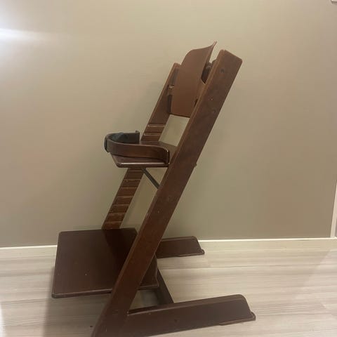 Myydään vanhan mallinen ja iäkäs trip trap tarpeettomana. Edelleen hyvin tukeva ja toimiva tuoli. Mukana tukikaari pienemmälle.