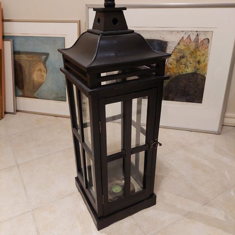 Siisti, hyväkuntoinen isokokoinen lyhty. K:60cm L:20cm.