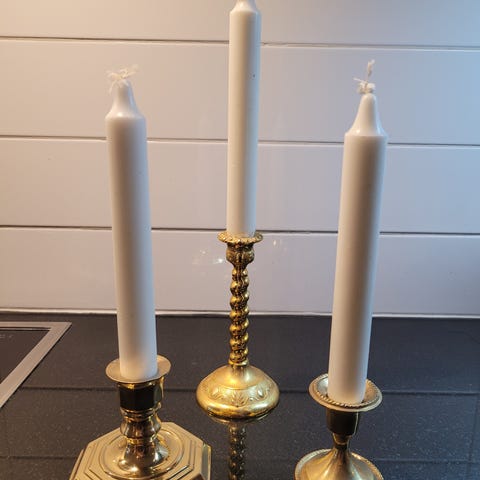Hyväkuntoiset kynttilänjalat 2 kpl joiden korkeus on 18 cm ja ovat tinaa. Ei ole toridiiliä joten nouto tai lähetys R kioskin tai postin kautta.