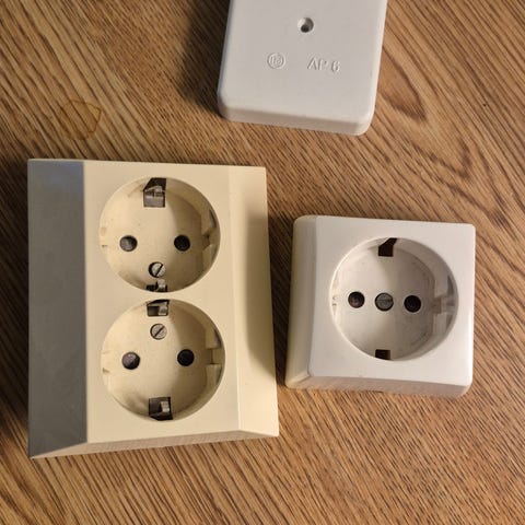 10 kpl maadoittamattomia pistorasioita. Suurimmassa osassa reikä mistä johto tullut. Haku tai lähetettäessä maksu etukäteen lähetyskuluineen