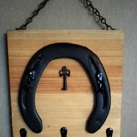 Käsityönä tehty hevosenkenkä koriste. Soveltuu sisäkäyttöön.