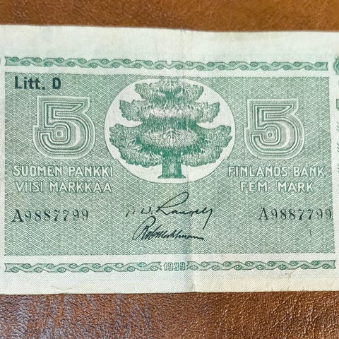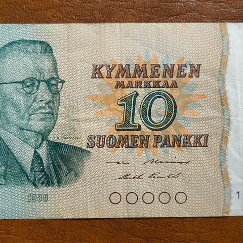 Kuvan ehjä seteli, taitoksia, ryhdikäs paperi, suurenna kuvaa kunnon selvittämiseksi, postitus 3 €