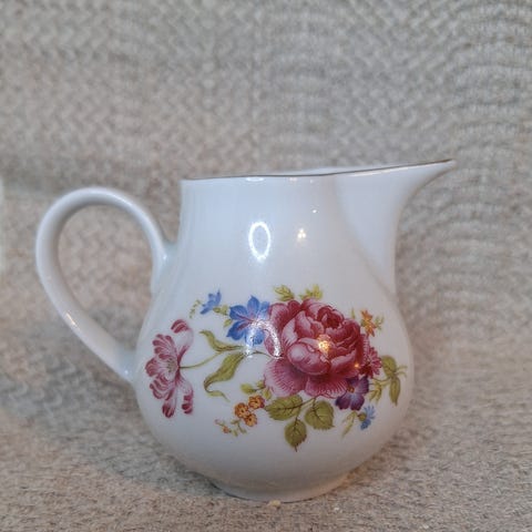 Myydään ehjät hyväkuntoiset kukkakuvioiset saksalaiset kermakko ja sokerikko.