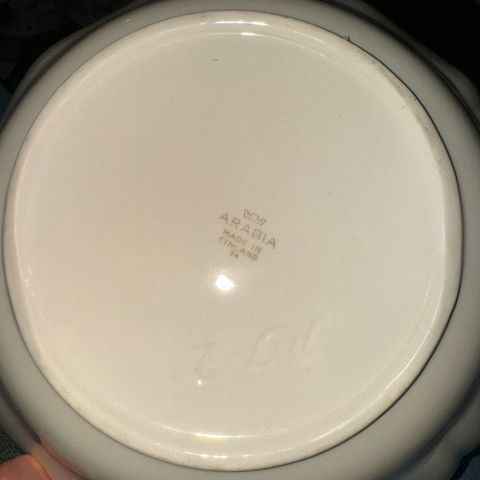 Arabia kannellinen tarjoilukulho valkoista posliinia