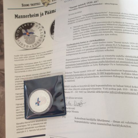 Suomi Sotainvalidien veljesliitto 1990 hopeinen juhlaraha 100 mk