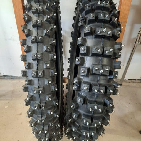 Taka, Bridgestone 110/100-18, kaikki nastat tallella.