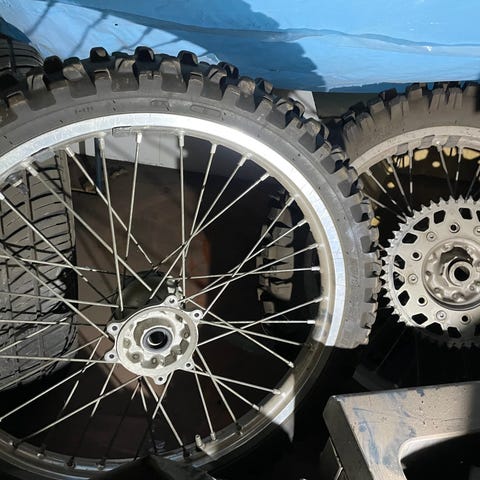 Renkaalla ajettu yksi setti, vanteella muutama kerta, kurkkaa navan ja kehän kunto.